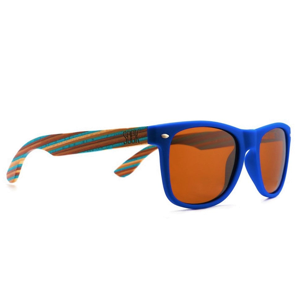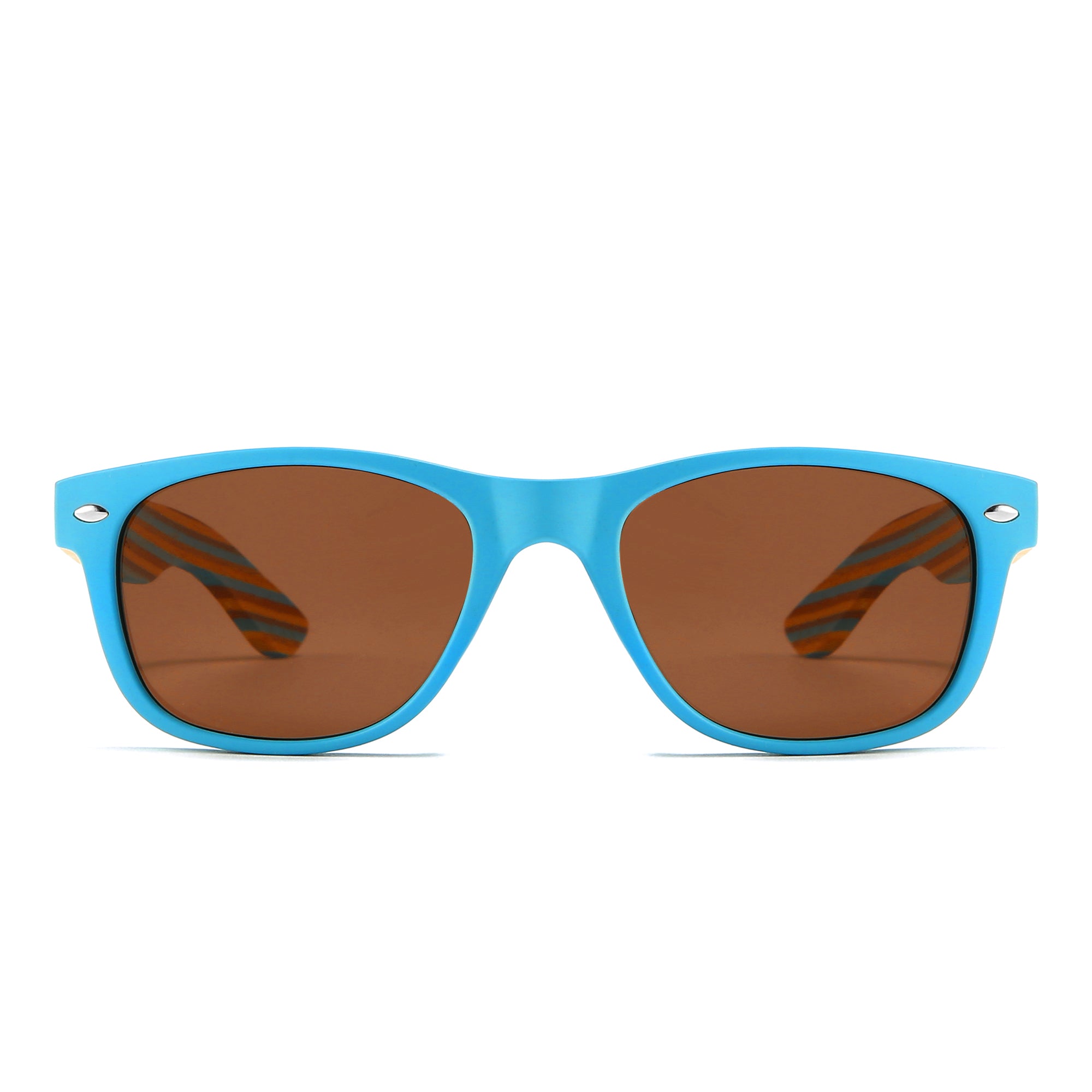 BRONTE Polarised Lens l Blue Striped Wooden Arms