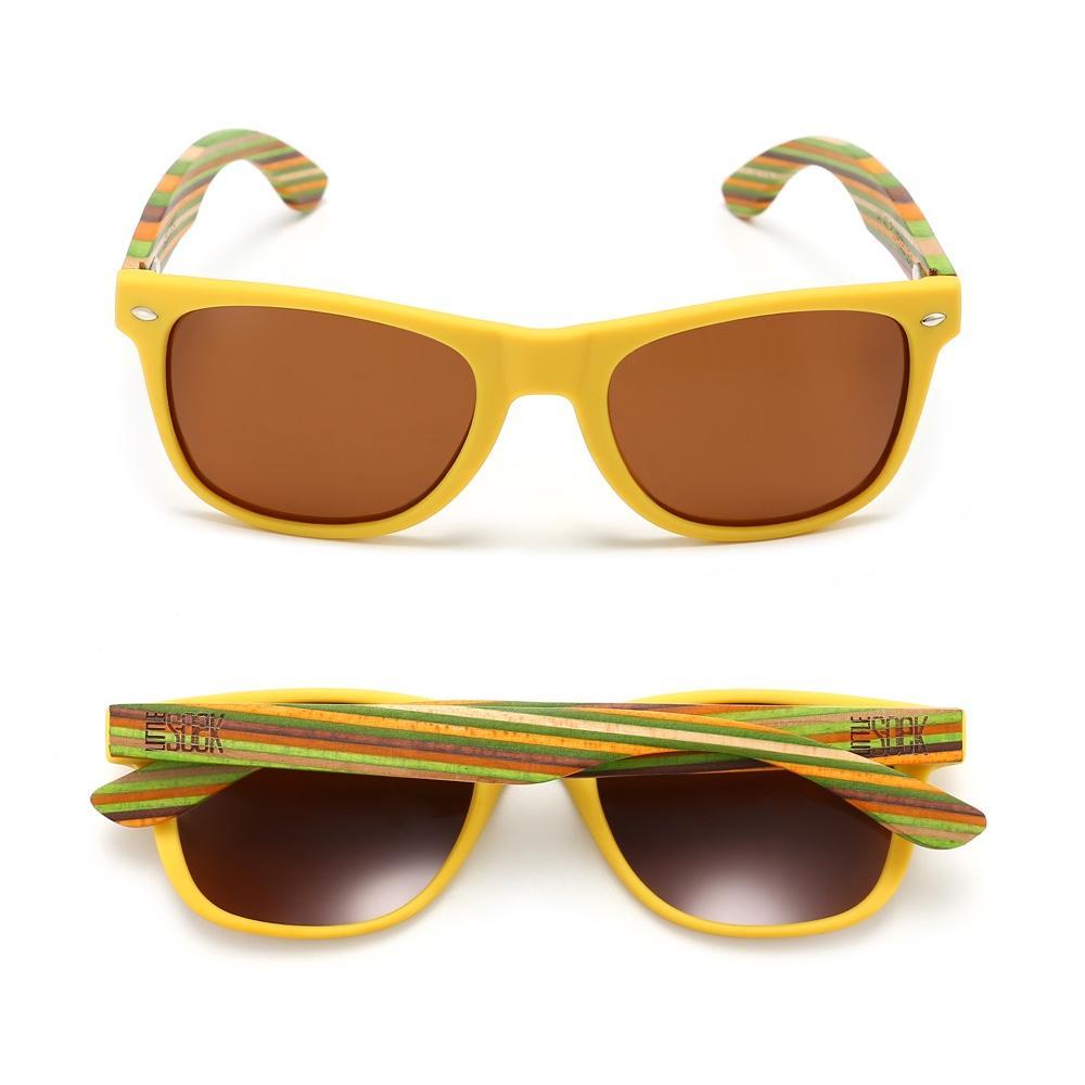 AVOCA Brown Lenses l Mustard Striped Wooden Bamboo Arm