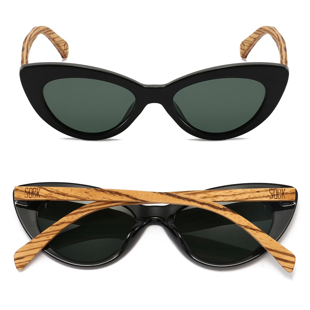 Wooden Polarised Sunglasses, Black Sunnies, Cat eye sunglasses